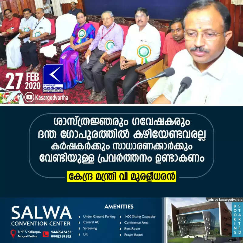 Keywords: Kasaragod, Kerala, News, CPCRI, Minister, Agriculture, Central minister V Muraleedharan at CPCRI < !- START disable copy paste -->