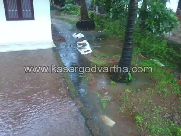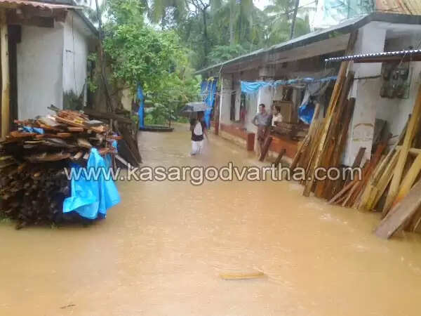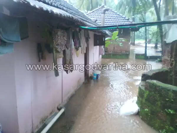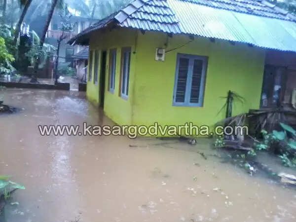 തകര്ത്തു പെയ്യുന്ന മഴയില് താഴ്ന്ന പ്രദേശങ്ങളില് വെള്ളം കയരി. സീതാംഗോളി, ഹിദായത്ത് നഗര്, മധൂര്, ഷിറിയ, പട്ള, മൊഗ്രാല് പുത്തൂര് തുടങ്ങിയ സ്ഥലങ്ങളിലെല്ലാം വെള്ളം കയറി. നുള്ളിപ്പാടി ബദിബാഗിലുവിലെ രാമനാഥന്റെ ഓടിട്ടവീട് മഴയില് തകര്ന്നു. ശനിയാഴ്ച രാത്രിയാണ് സംഭവം.