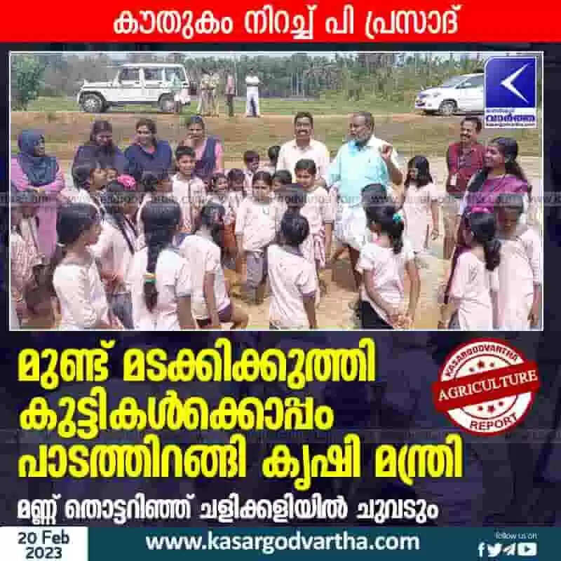 Keywords: Latest-News, Kerala, Kasaragod, Nileshwaram, Top-Headlines, Agriculture, Minister, Farmer, Farming, Childrens, P. Prasad, Minister of Agriculture in field with children.