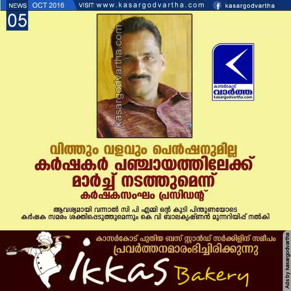 Keywords: Kasaragod, Kerala, Uduma, Pension, CPM, Agriculture, Seed, Farmers, KV Balakrishnan, Government, Strike, March, KV Balakrishnan.