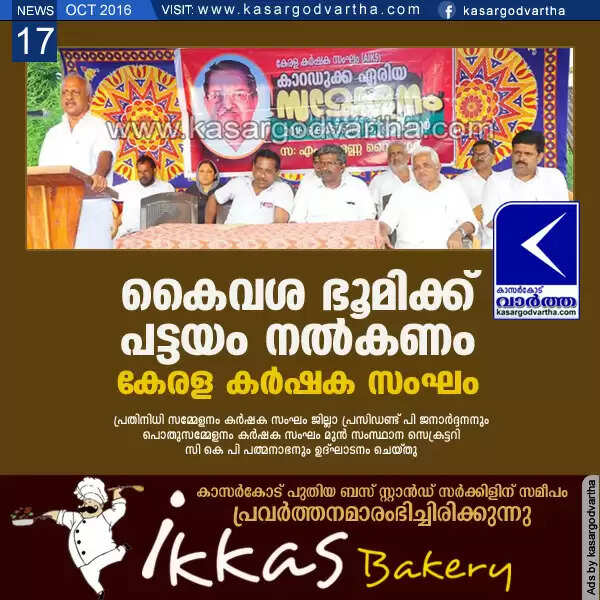 Keywords: Kasaragod, Kerala, Adoor, Agriculture, Kerala Karshaka sangam, Area, Conference, District, President, P Janardhanan,