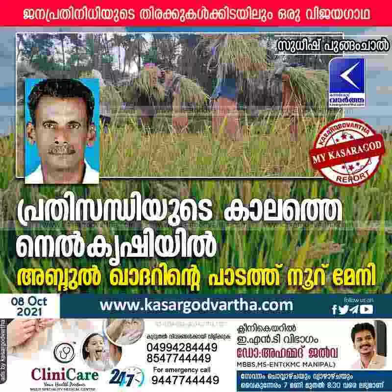 Keywords: Kasaragod, News, Kerala, Vellarikundu, Agriculture, Panchayath, Balal, President, Inauguration, Farmer, kasargod Vartha, Success story for Abdul Khadar in paddy cultivation.
