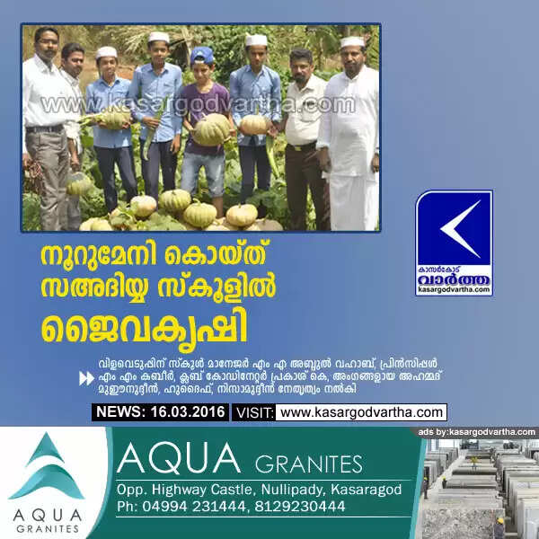 ദേളി: (www.kasargodvartha.com 16.03.2016) വിളവെടുപ്പില് നൂറുമേനി കൊയ്ത് സഅദിയ്യ സ്കൂളില് ജൈവ പച്ചക്കറി കൃഷി. സ്കൂള് പരിസ്ഥിതി ക്ലബിന് കീഴിലുള്ള ഒരേക്കര് സ്ഥലത്താണ് കൃഷിയിറക്കിയത്. ജൈവ കൃഷിയുടെ പ്രാധാന്യം പരിചയപ്പെടുത്തുന്നതിനായാണ് സ്കൂളില് കൃഷിയാരംഭിച്ചത്.