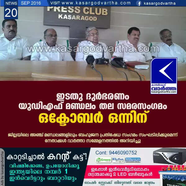 ഇടതു ദുര്ഭരണം-യു.ഡി.എഫ് മണ്ഡലം തല സമരസംഗമം ഒക്ടോബര് 1ന്