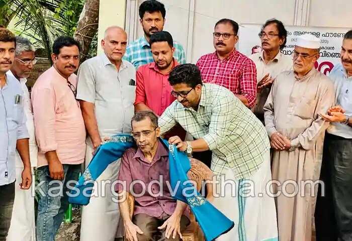 ഇബ്രാഹിം ബേവിഞ്ചയെ ചെർക്കളം അബ്ദുള്ള ഫൗൻഡേഷൻ അദ്ദേഹത്തിന്റെ വീട്ട് മുറ്റത്ത് നടത്തിയ ചടങ്ങിൽ ആദരിച്ചപ്പോൾ