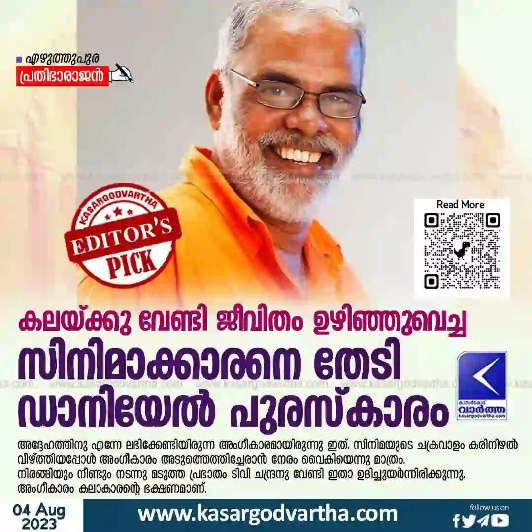 Keywords: T V Chandran, J C Daniel award, Malayalam cinema, Palakkunnu, Fine Arts, J C Daniel award for T V Chandran.