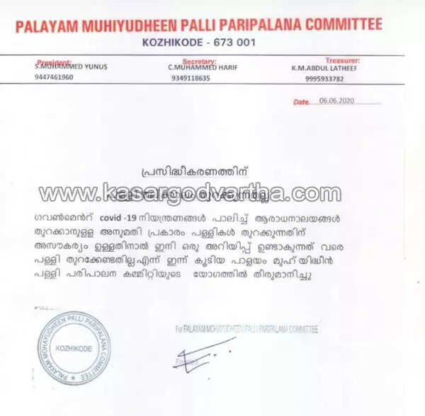 Keywords: Kasaragod, Kerala, Malik deenar, Article, malik deenar mosques will remain closed till next notification