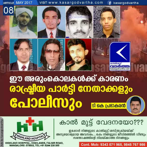 Keywords: Article, Politics, Leader, Police, Murder, Kasaragod, T K Prabhakaran, Political Party, Religious Organization.