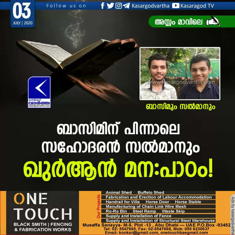 ബാസിമിന് പിന്നാലെ സഹോദരന് സല്മാനും ഖുര്ആന് മന:പാഠം!