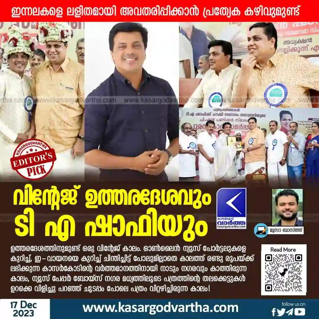 Keywords: News, Articals, Malayalam, Utharadesam, TA Shafi, Award, Media, Journalist , Vintage Utharadesam and TA Shafi