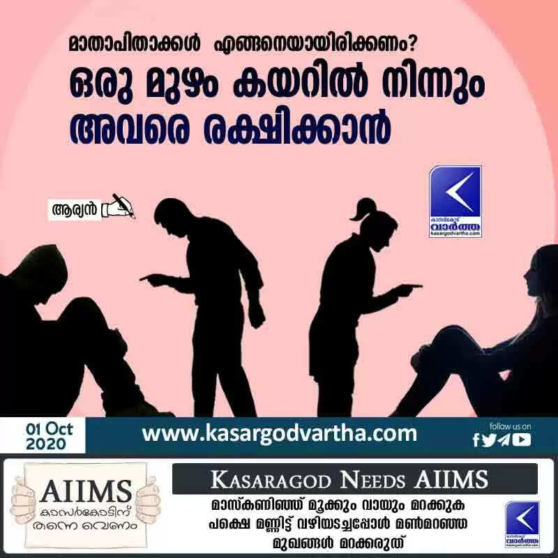 (www.kasargodvartha.com 01.10.2020) ഇന്ന് തന്റെ മാതാപിതാക്കളെ ആത്മാർത്ഥമായി സ്നേഹിക്കുന്ന എത്ര മക്കളുണ്ട്? ഈ ചോദ്യത്തോടെ തന്നെ ആരംഭിക്കാം. സ്വാഭാവികമായും ഓരൊരുത്തരുടേയും ഉത്തരം മാതാപിതാക്കളെ സ്നേഹിക്കാത്ത മക്കളുണ്ടോ എന്നായിരിക്കും. എന്നാൽ ഇതേ ചോദ്യം നിങ്ങൾ ഇന്നത്തെ പുതു തലമുറയോട് ചോദിച്ച് നോക്കുക. ഇതേ യുഗത്തിൽ ജനിച്ച യുവാവാണെന്ന നിലയിൽ എന്റെ ഉത്തരം 80 ഓ അതിലധികമോ ശതമാനം പേരും മാതാപിതാക്കളെ സ്നേഹിക്കുന്നില്ല എന്നാണ്. എന്തുകൊണ്ടെന്ന് ചോദിച്ചാൽ ഇന്നത്തെ കുട്ടികൾക്ക് അല്ലെങ്കിൽ യുവാക്കൾക്ക് അവർ ഇഷ്ടപ്പെടുന്ന, അവർ ആഗ്രഹിക്കുന്ന മാതാപിതാക്കളാവാൻ സാധിക്കുന്നില്ല എന്നതാണ്. മാതാപിതാക്കൾ  എങ്ങനെയായിരിക്കണം? ഒരു മുഴം കയറിൽ നിന്നും അവരെ രക്ഷിക്കാൻ