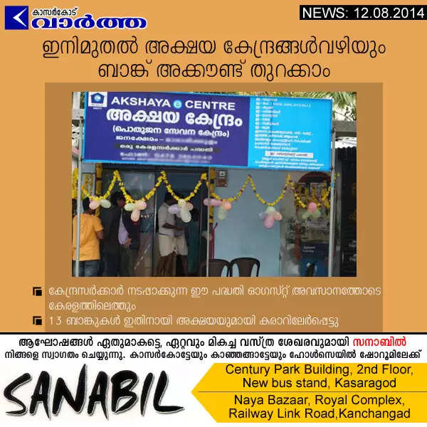 Keywords : Kasaragod, Bank, Kerala, Business, Bank Account, Akshaya Center.