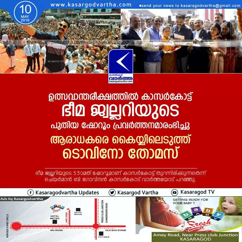 ഉത്സവാന്തരീക്ഷത്തില്‍ കാസര്‍കോട്ട് ഭീമ ജ്വല്ലറിയുടെ പുതിയ ഷോറൂം പ്രവര്‍ത്തനമാരംഭിച്ചു; ആരാധകരെ കൈയ്യിലെടുത്ത് ടൊവിനോ തോമസ്