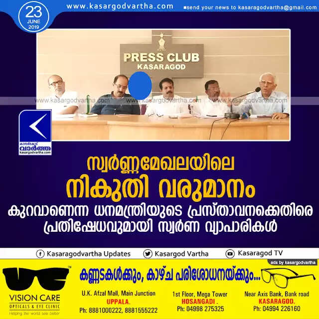 Keywords: kasaragod, Merchant, gold, Kerala, news, Merchant-association, Minister, Gold merchants against Finance minister