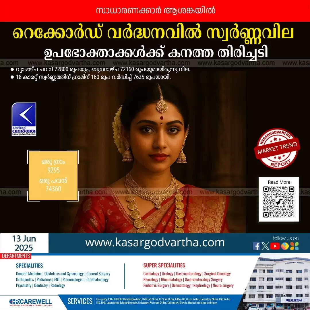 സ്വർണ്ണവില സർവ്വകാല റെക്കോർഡിൽ: പവന് 74360 രൂപ
