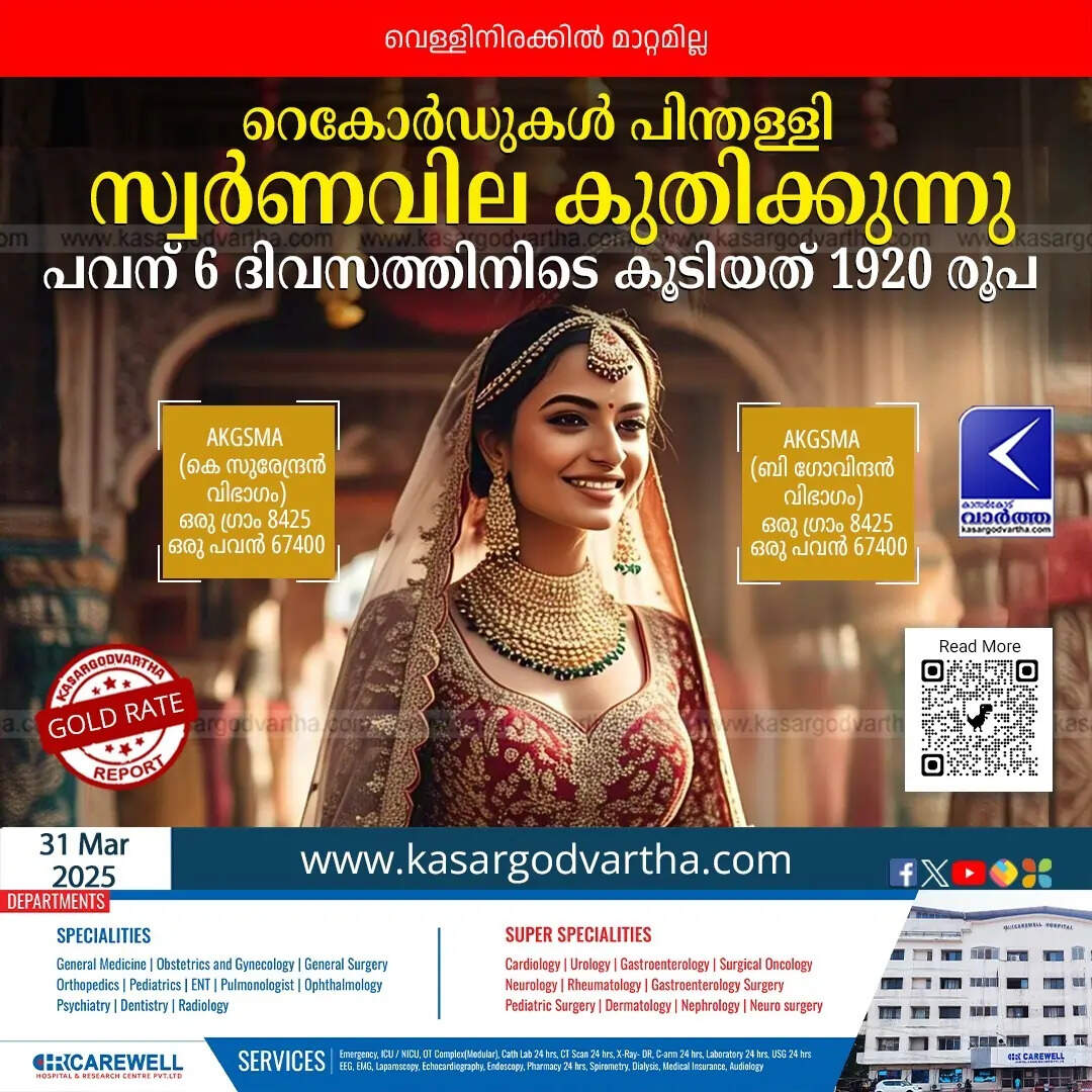 നിലവിലെ സാഹചര്യത്തില് വില വര്ധനവ് തുടരുകയാണെങ്കില് അത്ഭുതപ്പെടാനില്ല. ആഗോള വിപണിയിലെ മാറ്റങ്ങളും പ്രാദേശിക ആവശ്യകതയും സ്വര്ണവിലയെ സ്വാധീനിക്കുന്ന ഘടകങ്ങളാണ്. സ്വര്ണ്ണവിലവര്ദ്ധനവ് ഇന്ത്യയിലെ ജനങ്ങളുടെ കൈവശമുള്ള സ്വര്ണത്തിന്റെ മൂല്യവും വര്ദ്ധിക്കുകയാണ്. 25000 മുതല് 30000 ടണ് വരെ സ്വര്ണമാണ് ജനങ്ങളുടെ കൈവശമുള്ളത്. അന്താരാഷ്ട്ര സ്വര്ണ്ണവില 3200 ഡോളറിലേക്കുള്ള കുതിപ്പ് തുടരുകയാണെന്ന സൂചനകളാണ് വരുന്നത്.