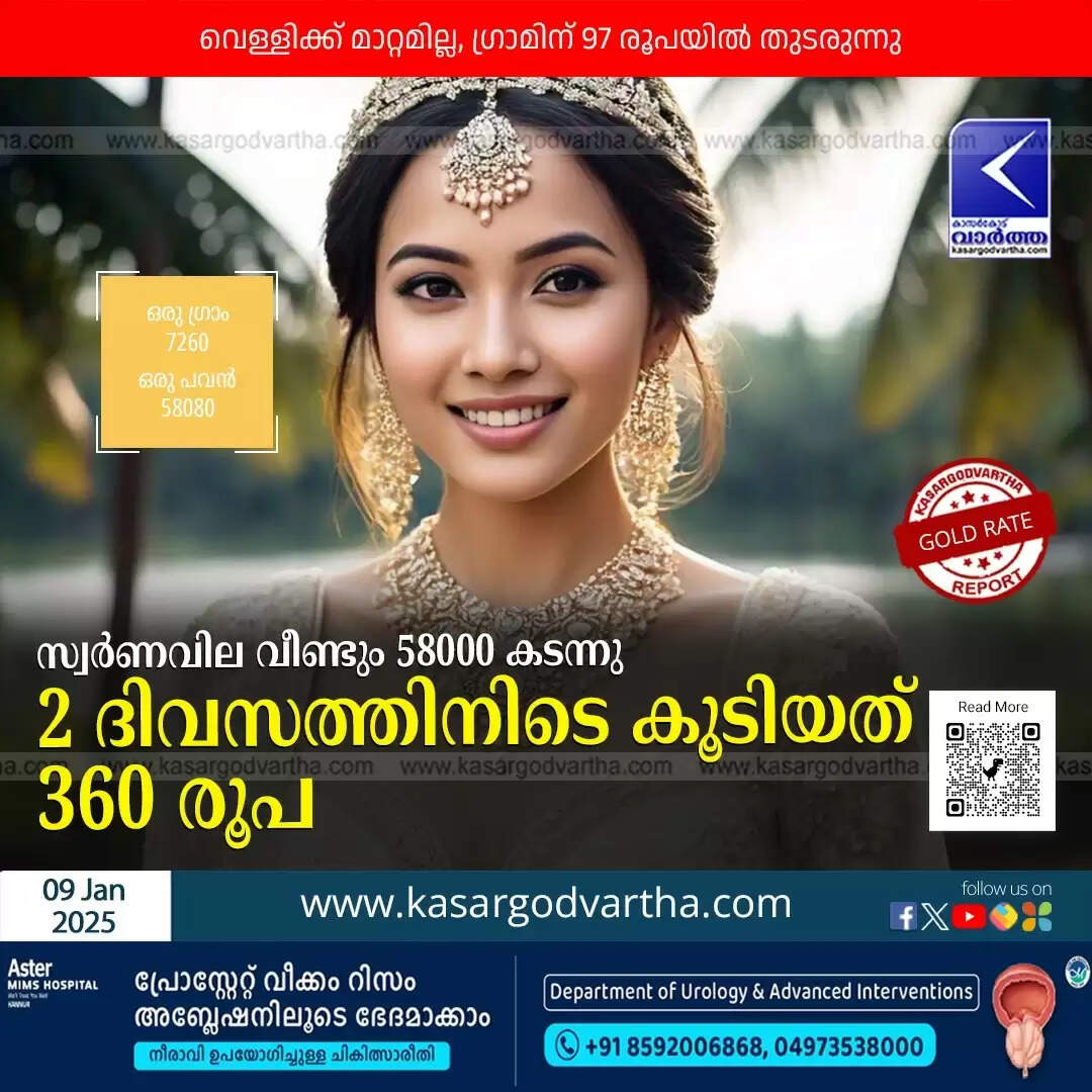 Market | സ്വര്ണവില വീണ്ടും 58000 കടന്നു; 2 ദിവസത്തിനിടെ കൂടിയത് 360 രൂപ