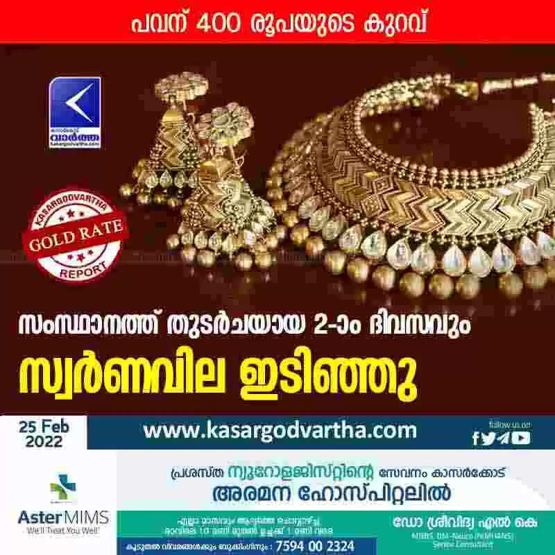 Keywords: Kochi, News, Kerala, Top-Headlines, Business, Gold, Price, Gold prices fell for the second day in a row in Kerala.