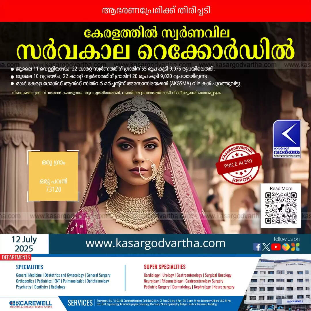 Article Summary: Gold price in Kerala hits all-time high, reaching ₹73,120 per sovereign.
