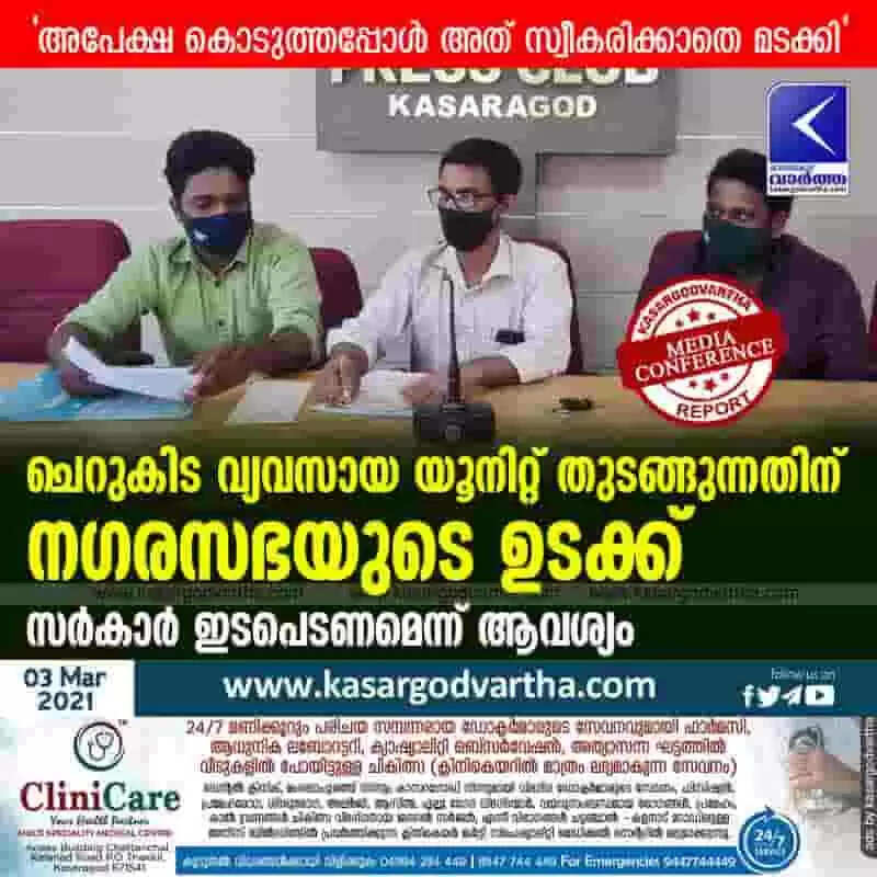 Keywords: Kasaragod, News, Kerala, Top-Headlines, Press meet, Business, Government, Municipal, Owner, Municipal obstruction to start small business unit; Need for government intervention.