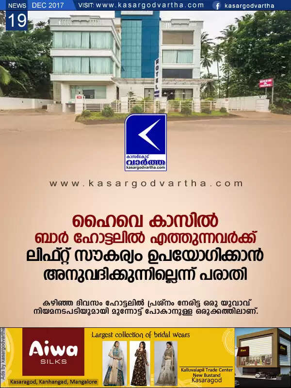 Keywords: Business, complaint, Hotel, kasaragod, Kerala, news, Workers, Lift, Customers, Police, Youngster, Legal Action, No lift facilities in Highway Castle hotel