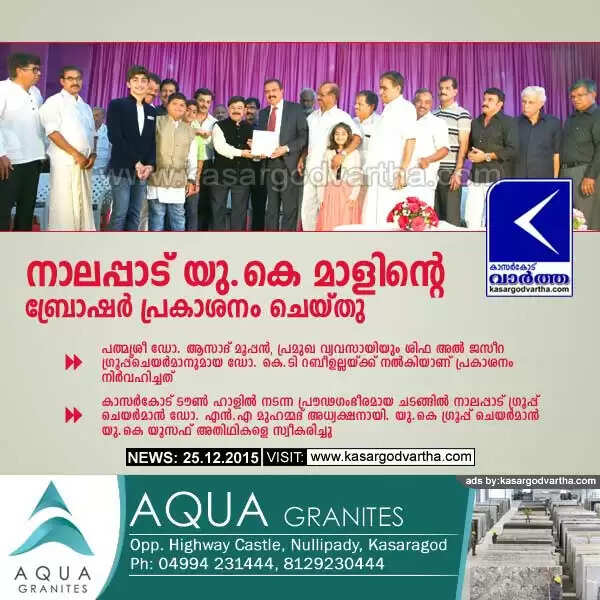Keywords : Kasaragod, Kerala, Business, Programme, U.K Mall, Old Bus Stand, Brochure, Dr. Asad Mooppan, D.r K.T Rabeeullah, Nalappad.