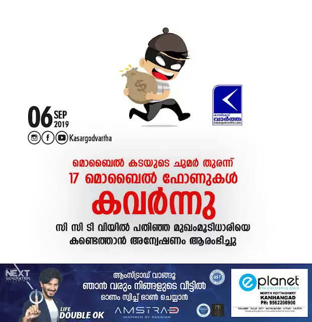Keywords:  Kasaragod, Kerala, news, Manjeshwaram, Mobile Phone, Robbery, Crime, 17 Mobile phones robbed from Shop