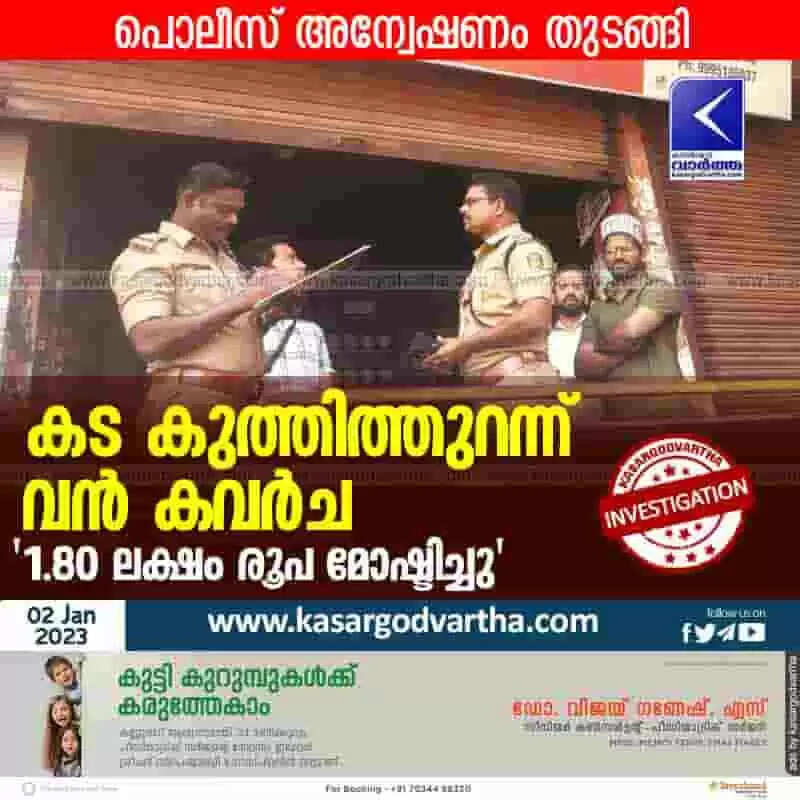 Keywords: Latest-News, Kerala, Kasaragod, Top-Headlines, Kumbala, Crime, Robbery, Theft, Investigation, 1.80 lakh stolen from shop.