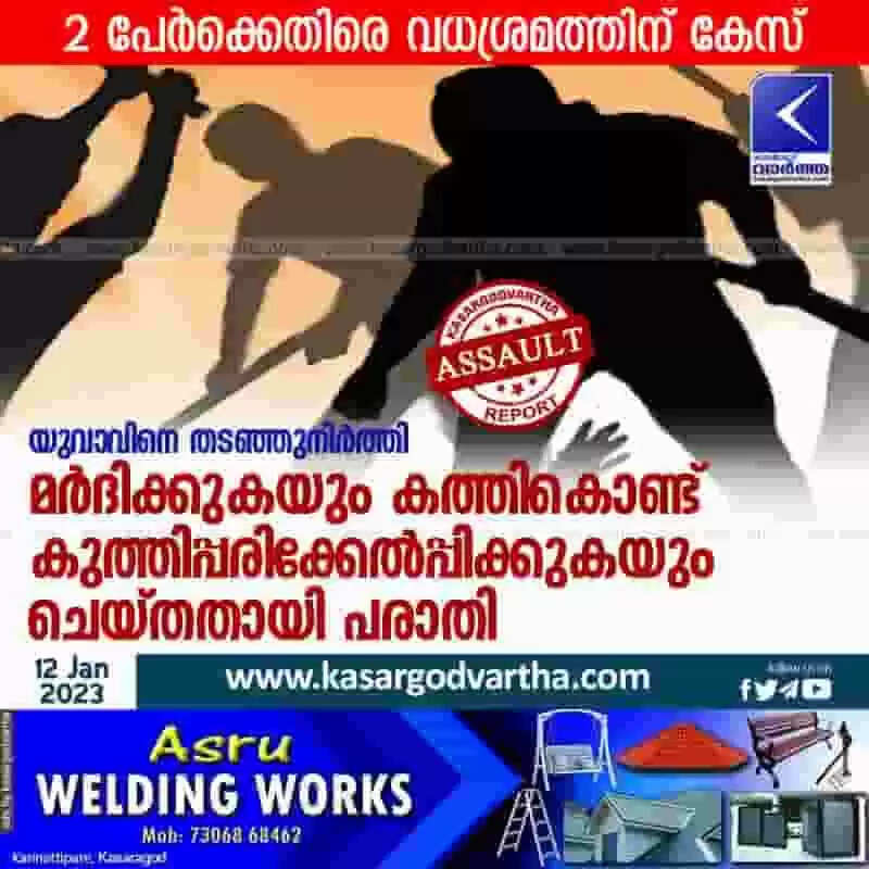 Police Booked | യുവാവിനെ തടഞ്ഞുനിര്ത്തി മര്ദിക്കുകയും കത്തികൊണ്ട് കുത്തിപ്പരിക്കേല്പ്പിക്കുകയും ചെയ്തതായി പരാതി; 2 പേര്ക്കെതിരെ വധശ്രമത്തിന് കേസ്