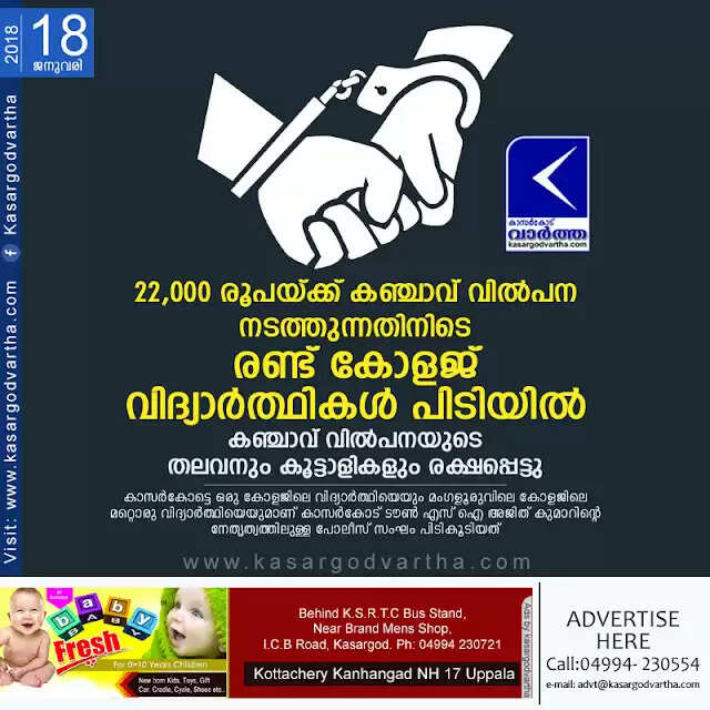 Keywords: Kasaragod, Kerala, news, Students, College, Ganja seized, Top-Headlines, Crime, 2 students held with Ganja