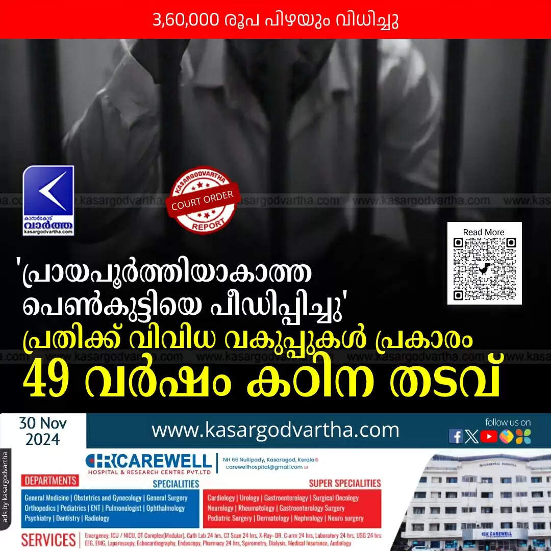 Conviction | 'പ്രായപൂർത്തിയാകാത്ത പെൺകുട്ടിയെ പീഡിപ്പിച്ചു'; പ്രതിക്ക് വിവിധ വകുപ്പുകൾ പ്രകാരം 49 വർഷം കഠിന തടവ്
