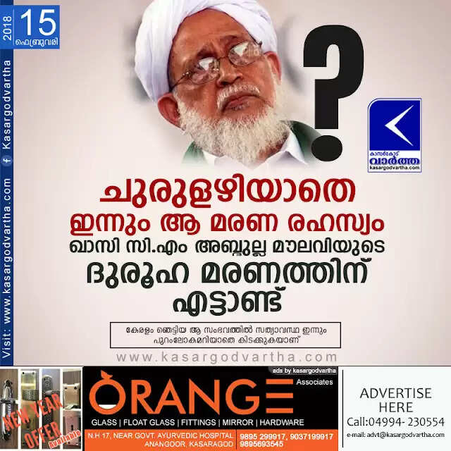 ചുരുളഴിയാതെ ഇന്നും ആ മരണ രഹസ്യം; ഖാസി സി.എം അബ്ദുല്ല മൗലവിയുടെ ദുരൂഹ മരണത്തിന് എട്ടാണ്ട്