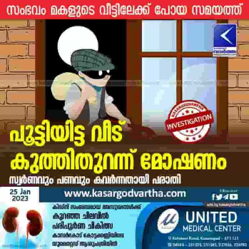 Theft | പൂട്ടിയിട്ട വീട് കുത്തിതുറന്ന് മോഷണം; സ്വര്ണവും പണവും കവര്ന്നതായി പരാതി