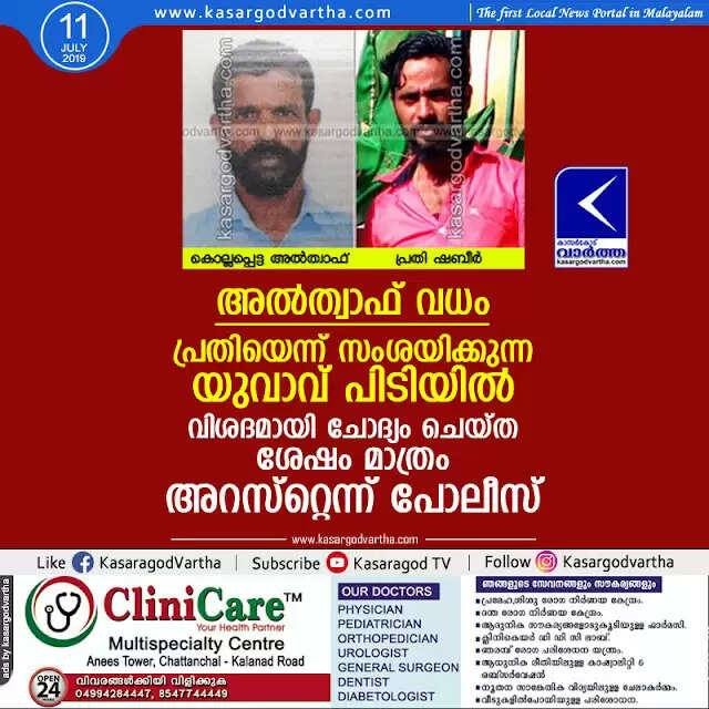 അല്‍ത്വാഫ് വധം: പ്രതിയെന്ന് സംശയിക്കുന്ന യുവാവ് പിടിയില്‍, വിശദമായി ചോദ്യം ചെയ്ത ശേഷം മാത്രം അറസ്‌റ്റെന്ന് പോലീസ്