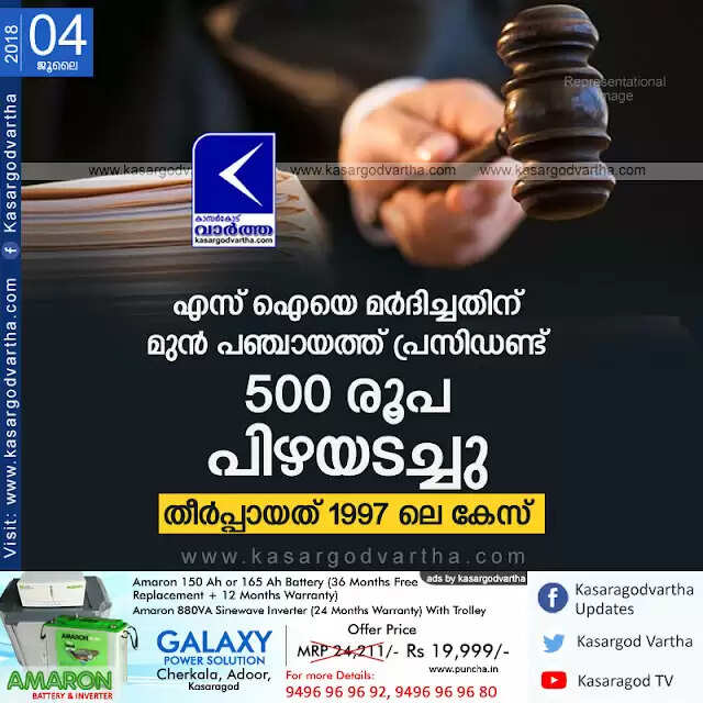 Keywords: Kasaragod, Kerala, news, Top-Headlines, court, Fine, Assault, Attack, Crime, Assault case; Fine for Ex Panchayat President