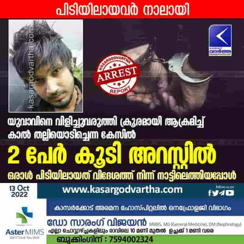 Arrested | യുവാവിനെ വിളിച്ചുവരുത്തി ക്രൂരമായി ആക്രമിച്ച് കാല് തല്ലിയൊടിച്ചെന്ന കേസില് 2 പേര് കൂടി അറസ്റ്റില്; ഒരാള് പിടിയിലായത് വിദേശത്ത് നിന്ന് നാട്ടിലെത്തിയപ്പോള്