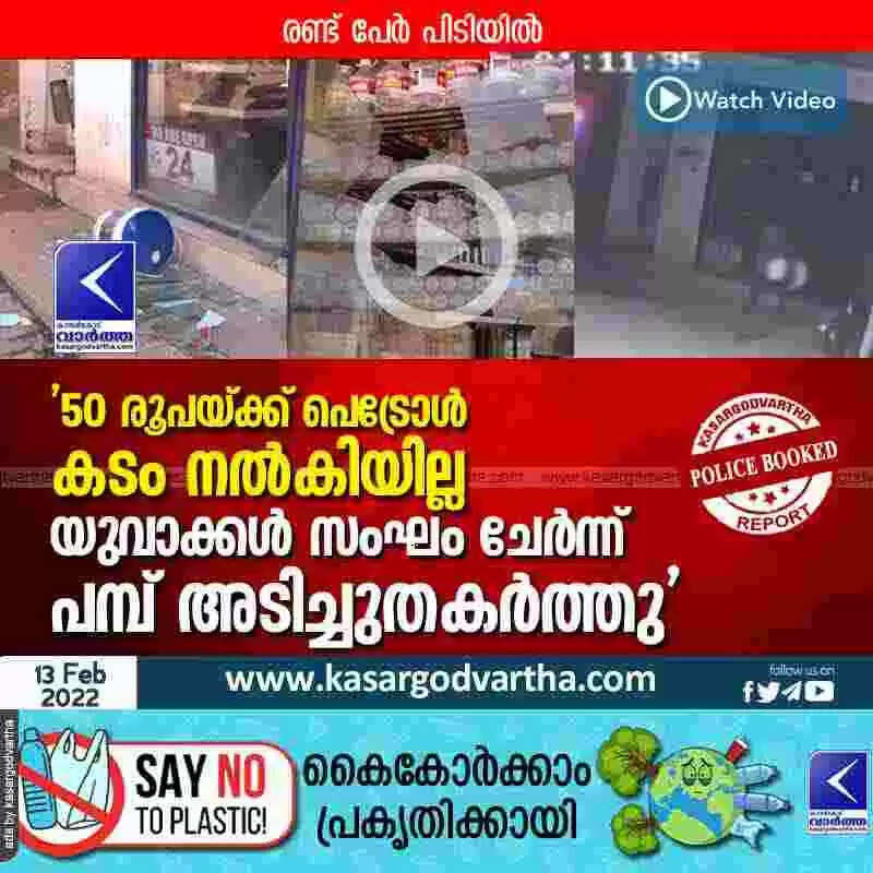 '50 രൂപയ്ക്ക് പെട്രോൾ കടം നൽകിയില്ല; യുവാക്കൾ സംഘം ചേർന്ന് പമ്പ് അടിച്ചുതകർത്തു'; രണ്ട് പേർ പിടിയിൽ