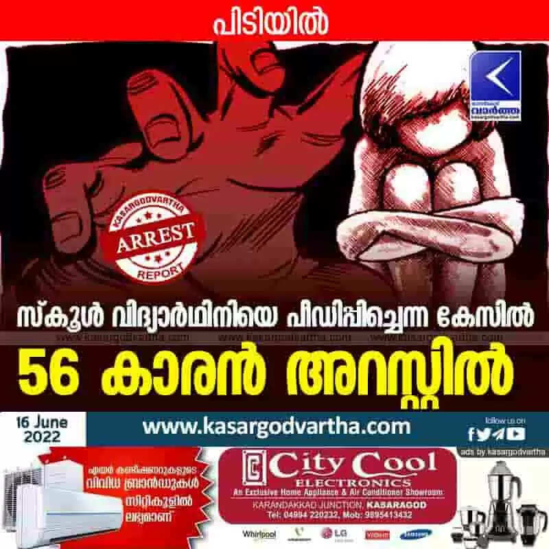 Arrested | സ്കൂൾ വിദ്യാർഥിനിയെ പീഡിപ്പിച്ചെന്ന കേസിൽ 56 കാരൻ അറസ്റ്റിൽ