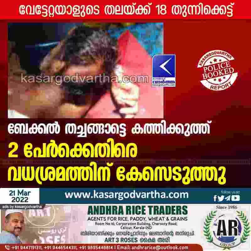 Police FIR | ബേക്കല് തച്ചങ്ങാട്ടെ കത്തിക്കുത്ത്: 2 പേര്ക്കെതിരെ വധശ്രമത്തിന് കേസെടുത്തു; വേട്ടേറ്റയാളുടെ തലയ്ക്ക് 18 തുന്നിക്കെട്ട്