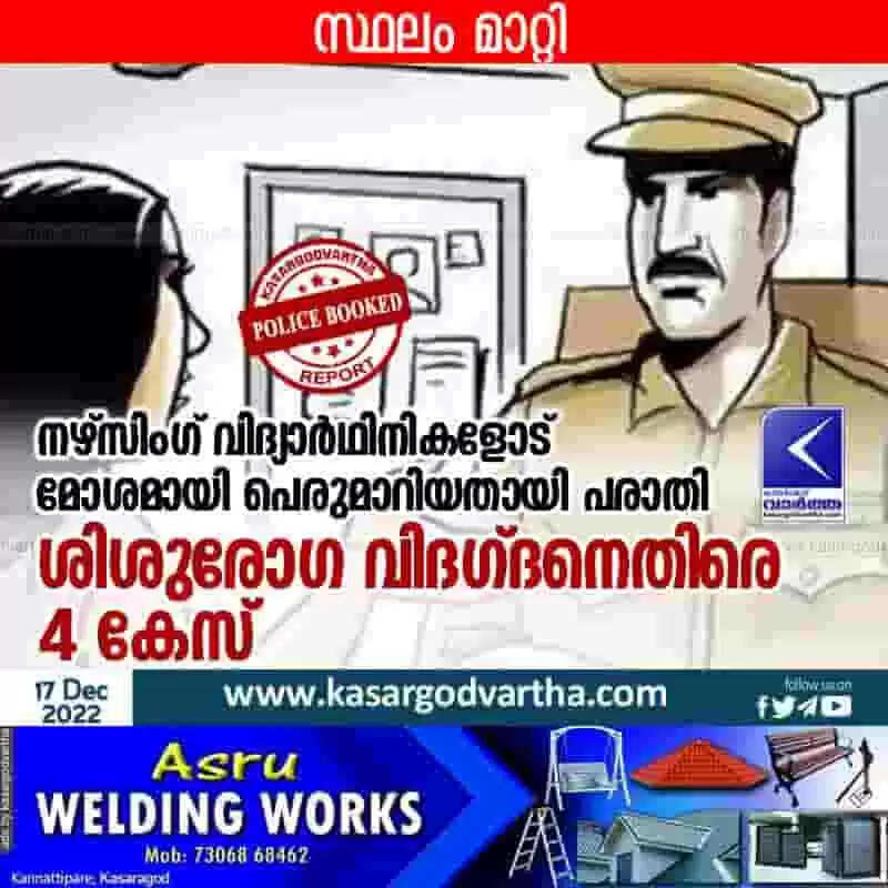 Police Booked | നഴ്‌സിംഗ് വിദ്യാര്‍ഥിനികളോട് മോശമായി പെരുമാറിയതായി പരാതി; ശിശുരോഗ വിദഗ്ദനെതിരെ 4 കേസ്; സ്ഥലം മാറ്റി