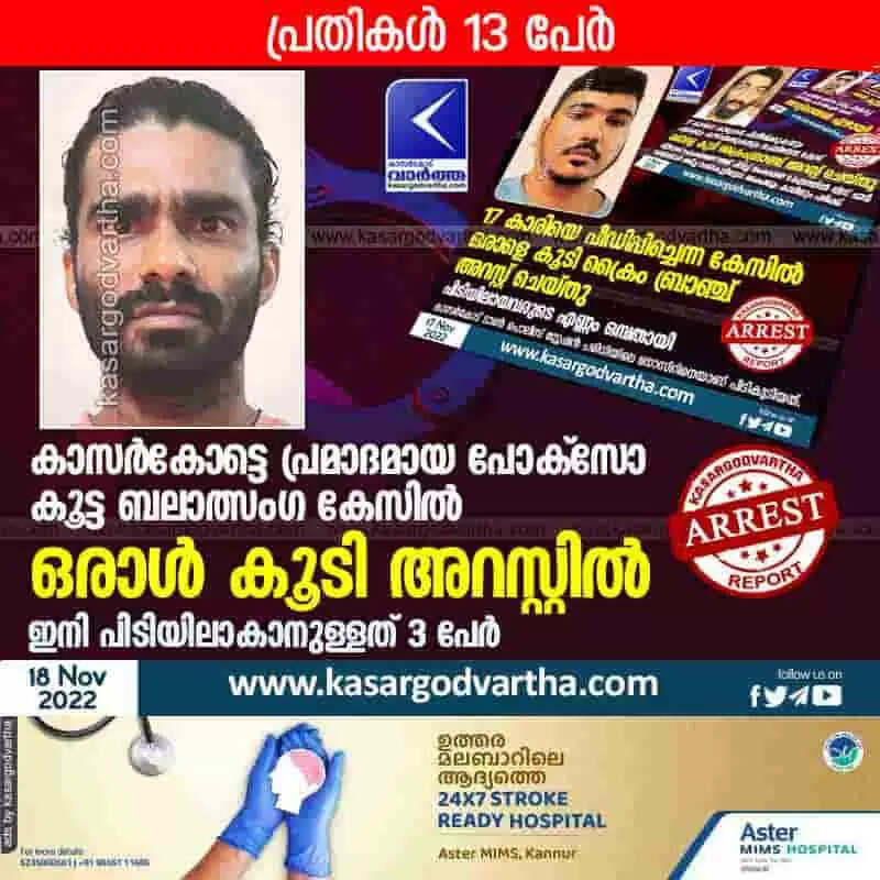 Arrested | കാസര്കോട്ടെ പ്രമാദമായ പോക്സോ കൂട്ട ബലാത്സംഗ കേസില് ഒരാള് കൂടി അറസ്റ്റില്; ഇനി പിടിയിലാകാനുള്ളത് 3 പേര്