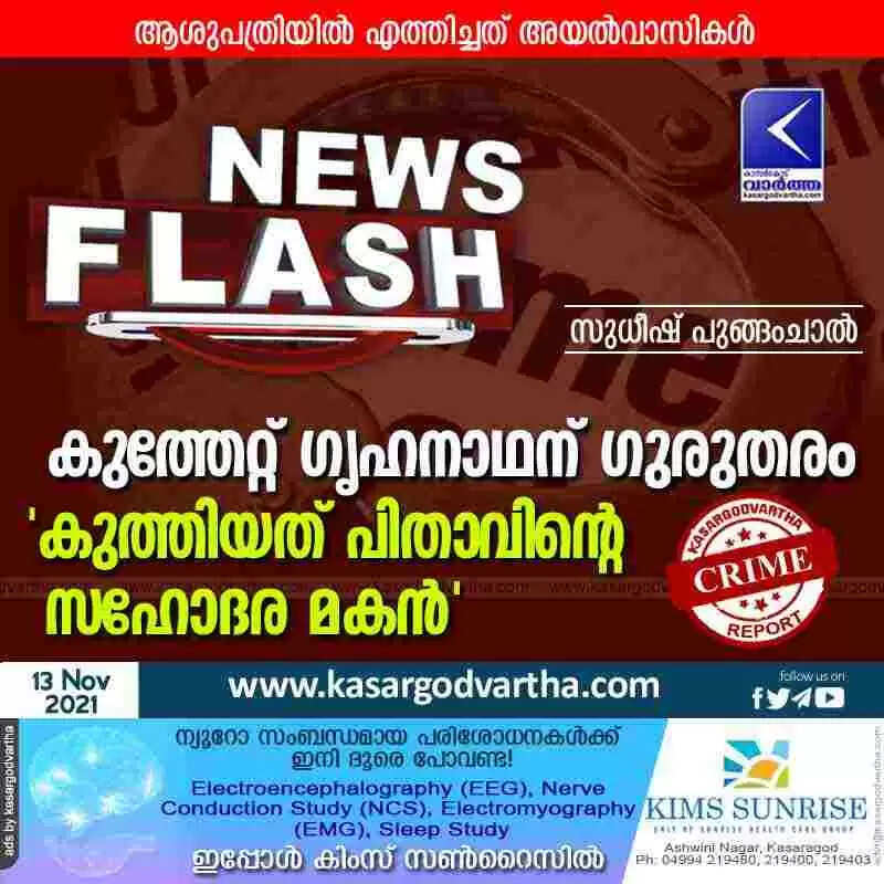 കുത്തേറ്റ് ഗൃഹനാഥന് ഗുരുതരം; 'കുത്തിയത് പിതാവിന്റെ സഹോദര മകൻ'