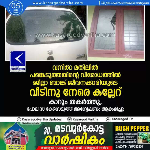 വനിതാ മതിലില് പങ്കെടുത്തതിന്റെ വിരോധത്തില് ജില്ലാ ബാങ്ക് ജീവനക്കാരിയുടെ വീടിനു നേരെ കല്ലേറ്; കാറും തകര്ത്തു, പോലീസ് കേസെടുത്ത് അന്വേഷണം ആരംഭിച്ചു
