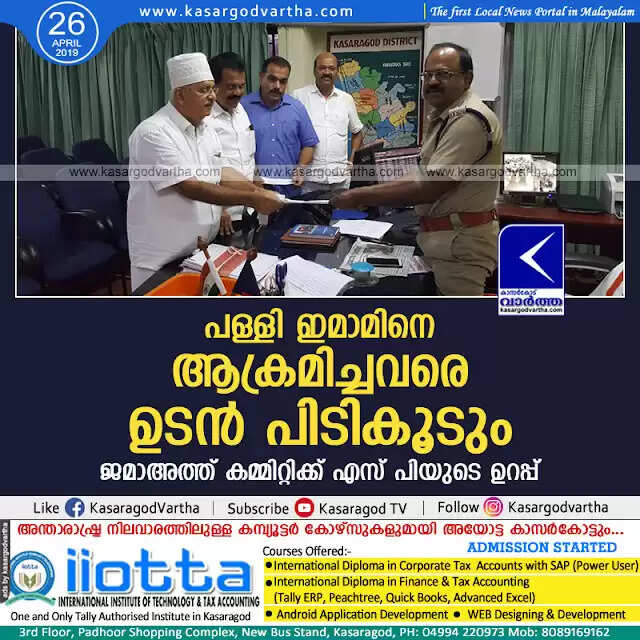 Keywords: Kasaragod, Kerala, news, Nellikunnu, S.P, Jamaath-committe, Attack, Crime, Attack against Masjid Imam; Jamaath committee memorandum submitted to SP