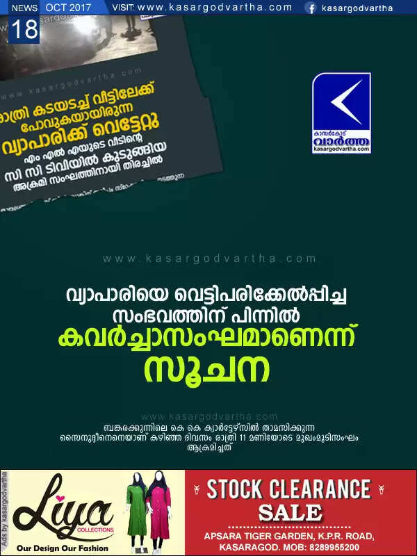 വ്യാപാരിയെ വെട്ടിപരിക്കേല്പ്പിച്ച സംഭവത്തിന് പിന്നില് കവര്ച്ചാസംഘമാണെന്ന് സൂചന