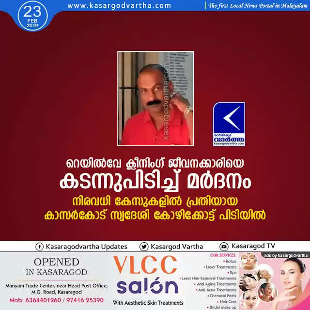 Keywords: Attack against Railway Cleaning lady; Man arrested, Kozhikode, News, Top-Headlines, Crime, Attack, Railway station, Police, arrest, Railway, Case.