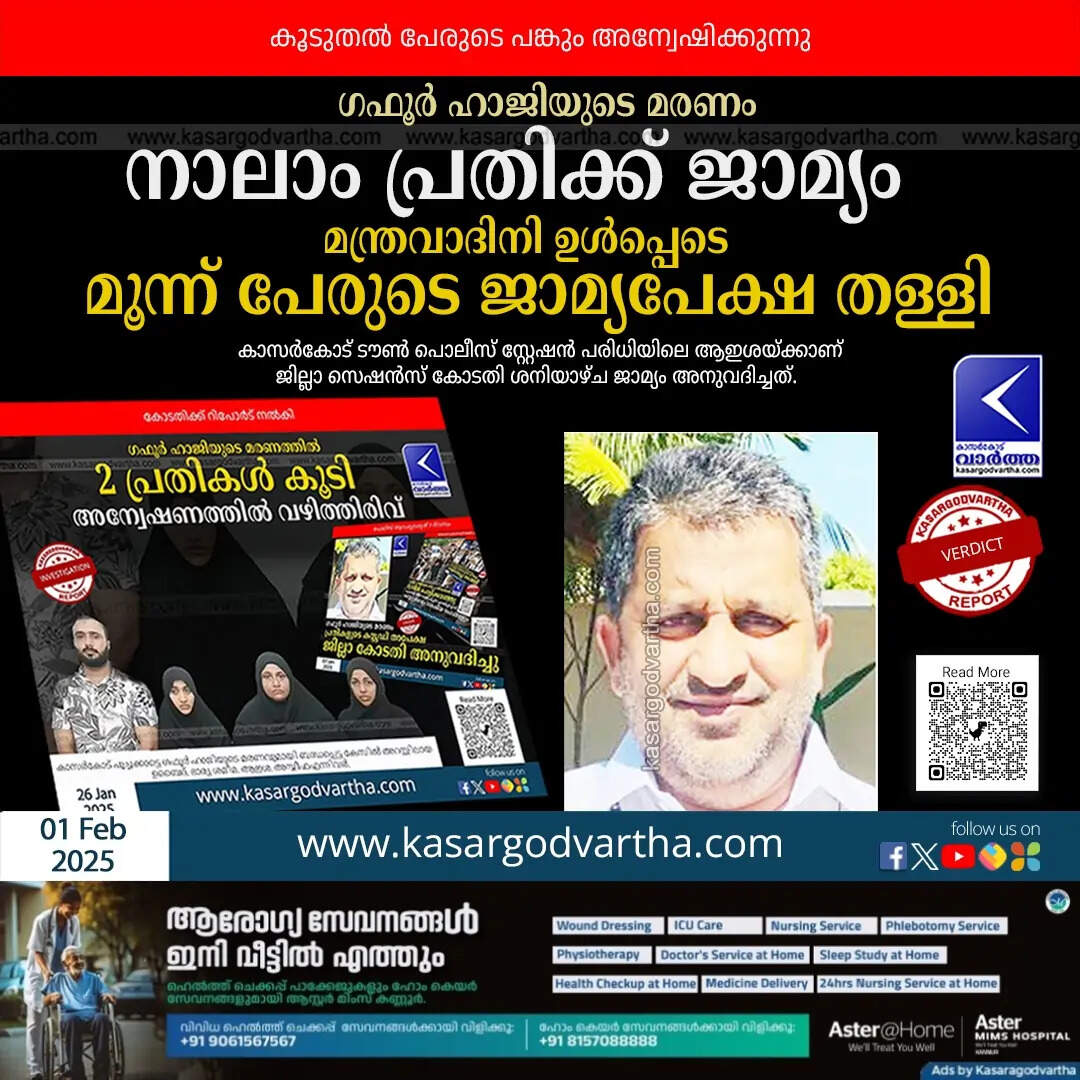 Verdict | ഗഫൂർ ഹാജിയുടെ മരണം: നാലാം പ്രതിക്ക് ജാമ്യം; മന്ത്രവാദിനി ഉള്പ്പെടെ മൂന്ന് പേരുടെ ജാമ്യപേക്ഷ തള്ളി
