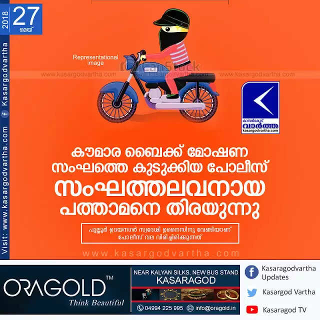 Keywords: Kasaragod, Kerala, news, Robbery, Police, Top-Headlines, arrest, Accuse, Bike, Robbery, Bike robbery case; Investigation for Leader of the accused