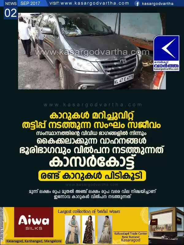Keywords : Car, Sale, Cheating, Crime, Kasaragod, Police, Investigation, Case, Innova Car, Trishur, Car sale after cheating; Two cases reported, Car sale after cheating; Two cases reported.