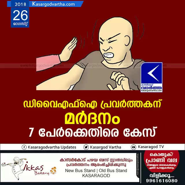 Keywords:  Kasaragod, Kerala, news, Crime, Assault, Attack, kudlu, DYFI, Case against 7 for assaulting DYFI Volunteer